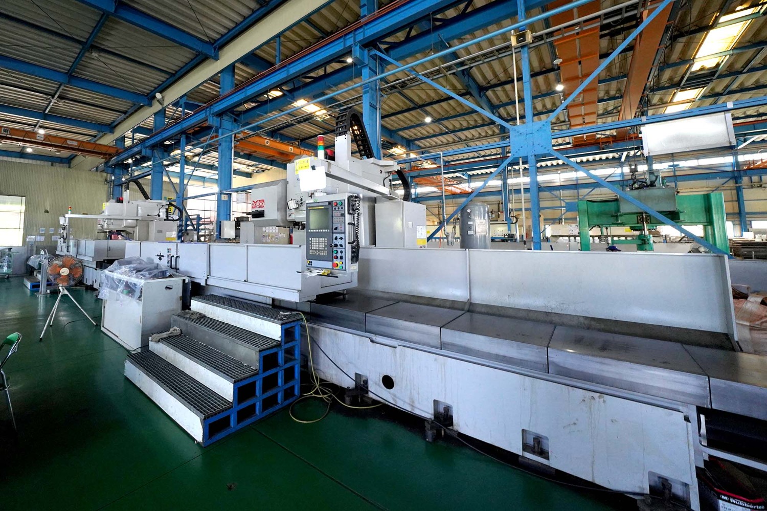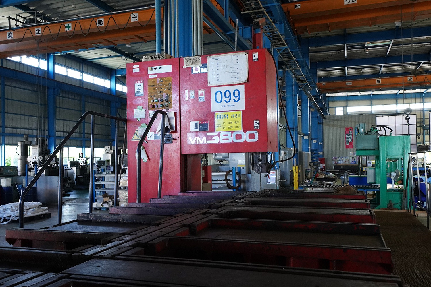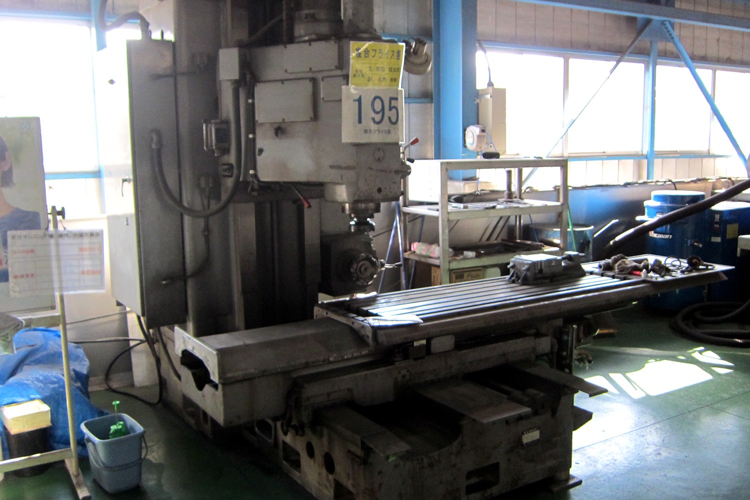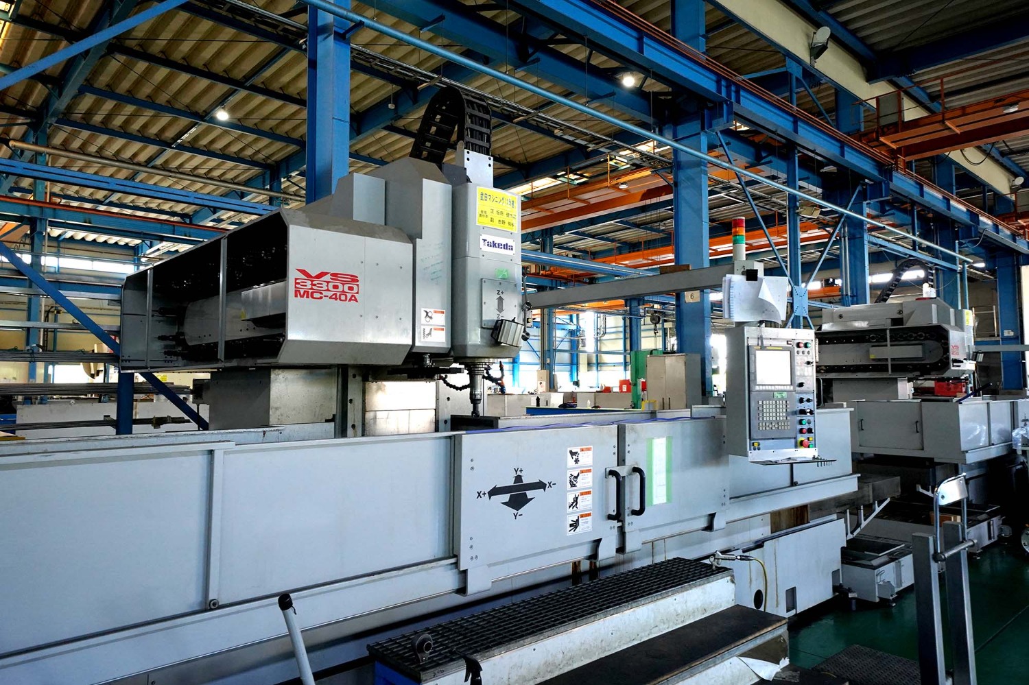 メーカー (株)武田機械 部門 加工・製造部門 機種 3軸加工機 仕様 主軸MAX4000min-1 テーブルサイズ:X3,500/Y730 ストローク:X3,300/Y750/Z630 最大ワーク寸法:X2,800/Y500/Z300 工場クレーン最大:2.8t 内容 難削材のステンレス材のプレート形状の加工を主に行います。縦型マシニングのため、縦方向からの加工機になります。主軸ヘッドが上下するので対応可能な製品高さは300mmまでです。 主軸はギアによる高低2段変速により、静粛な高速運転と高トルクで強力なツールクランプにおける低速運転での重切削が可能です。コラムトラバース構造によりテーブルへの接近性が良いため楽な姿勢での作業が可能2機並んで同仕様の為、工程分けした加工も可能で小サイズの部品加工に適しています。 -