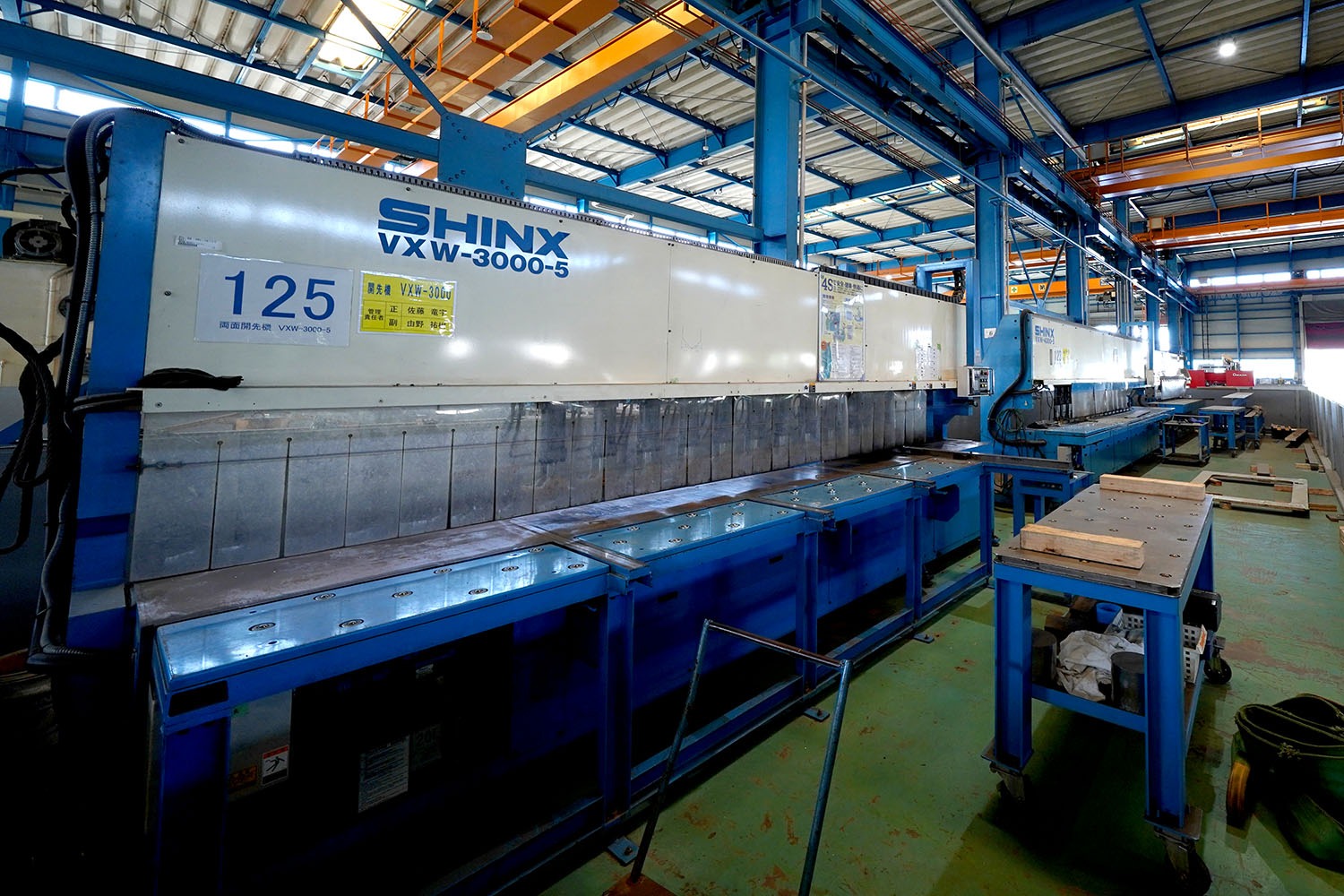 メーカー 小池酸素工業(株) 部門 素材切断部門 機種 プラズマ 仕様 テーブルサイズ:3.5m×18m 出力:440A(280A) 工場クレーン最大:10.0t 内容 板厚に応じて280A/440Aの切り替えができます。3m×8mの大板を2枚同時に段取りできるため、大型チャンバー向けの製品や一度に複数の製品を切断することが可能です。 切断能力:板厚16mm~38mm(280A)、板厚40mm~80mm(440A) 公共関係(ダム、水門、半導体製造設備部材 等)の大きい製品の切断も可能です。 -