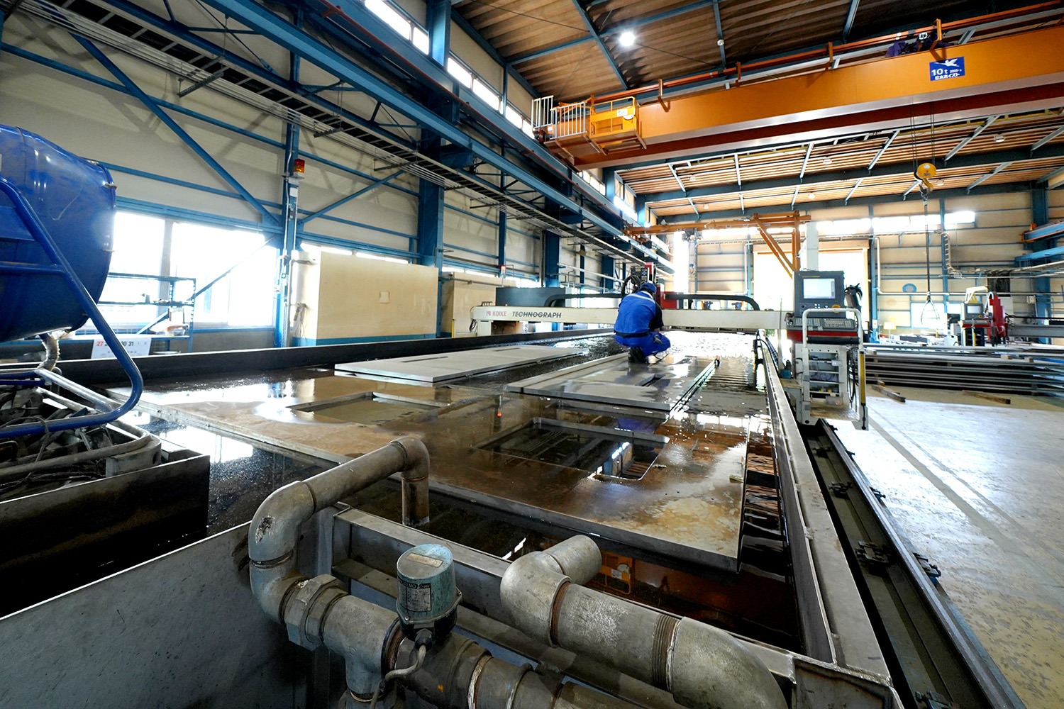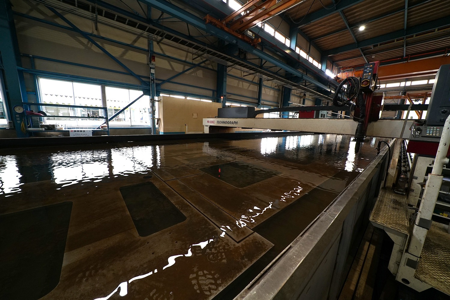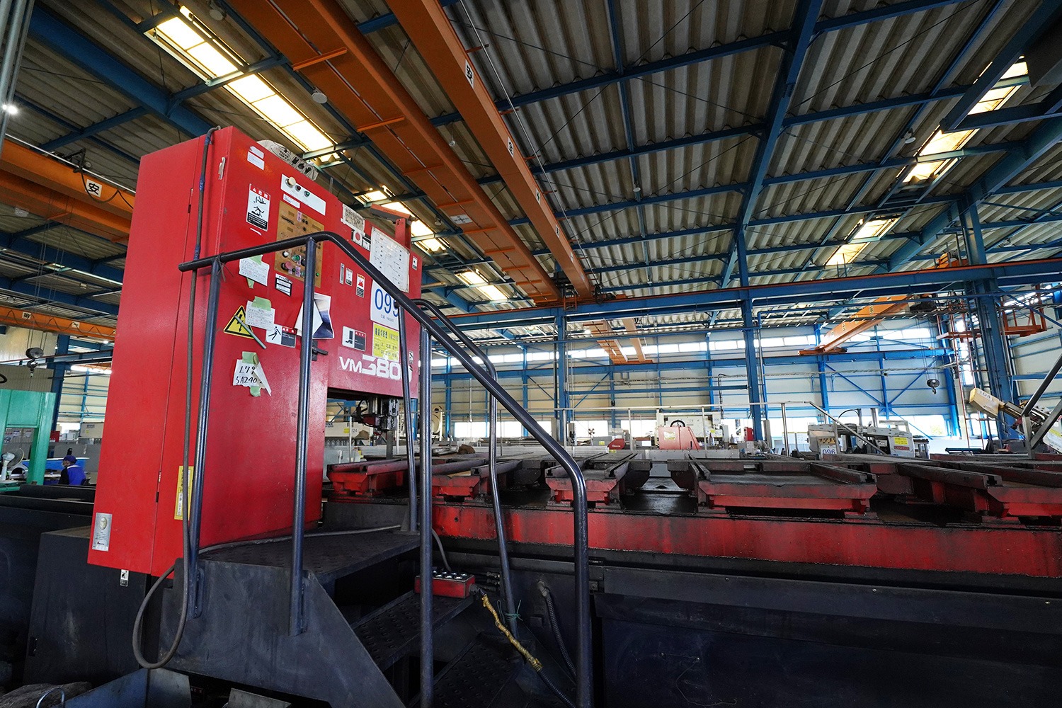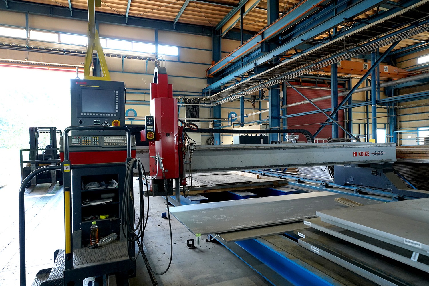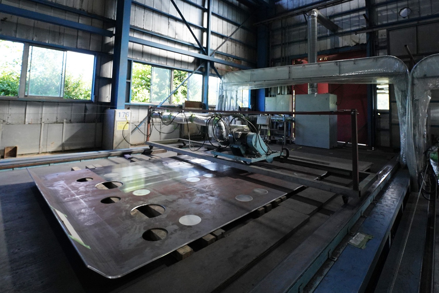 メーカー 小池酸素工業(株) 部門 素材切断部門 機種 プラズマ 仕様 テーブルサイズ:3.2m×9m 出力:600A 工場クレーン最大:10.0t 内容 板厚に応じて280A/440A/600Aの切り替えができます。厚板の切断や、ドリル機とプログラムを共有して作業を行うことができます。 切断能力:板厚16mm~35mm(280A)、板厚38mm~80mm(440A)、板厚80mm~110mm(600A) 最大製品サイズ:3m×7m 公共関係(ダム、水門、半導体製造設備部材 等)の大きい製品の切断も可能です。 -