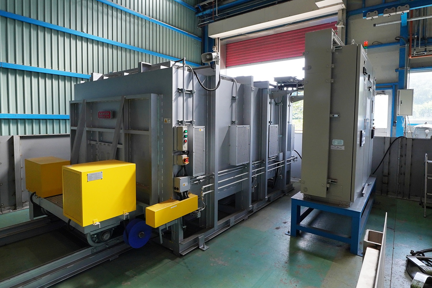 メーカー 三建産業(株) 部門 加工・製造部門 対応する素材 ステンレス 過去の実績例 精密加工部材 45mm×500mm×2,400mm・重量0.5t(ステンレス製) 機種 焼鈍 仕様 テーブルサイズ:幅1,500mm×2,500mm 温度:MAX870℃ 内容 台車自走式バッチ型の電気炉です。1t未満の重量を一度に焼鈍することが可能です。 昇温時間6時間+870℃維持時間4時間で行い、自然冷却します。 精密加工製品の加工前に素材の応力除去を行う装置で、加工中の応力開放による変形を無くす目的と切削性の向上が目的です。 -