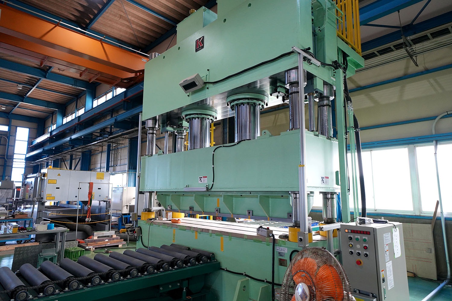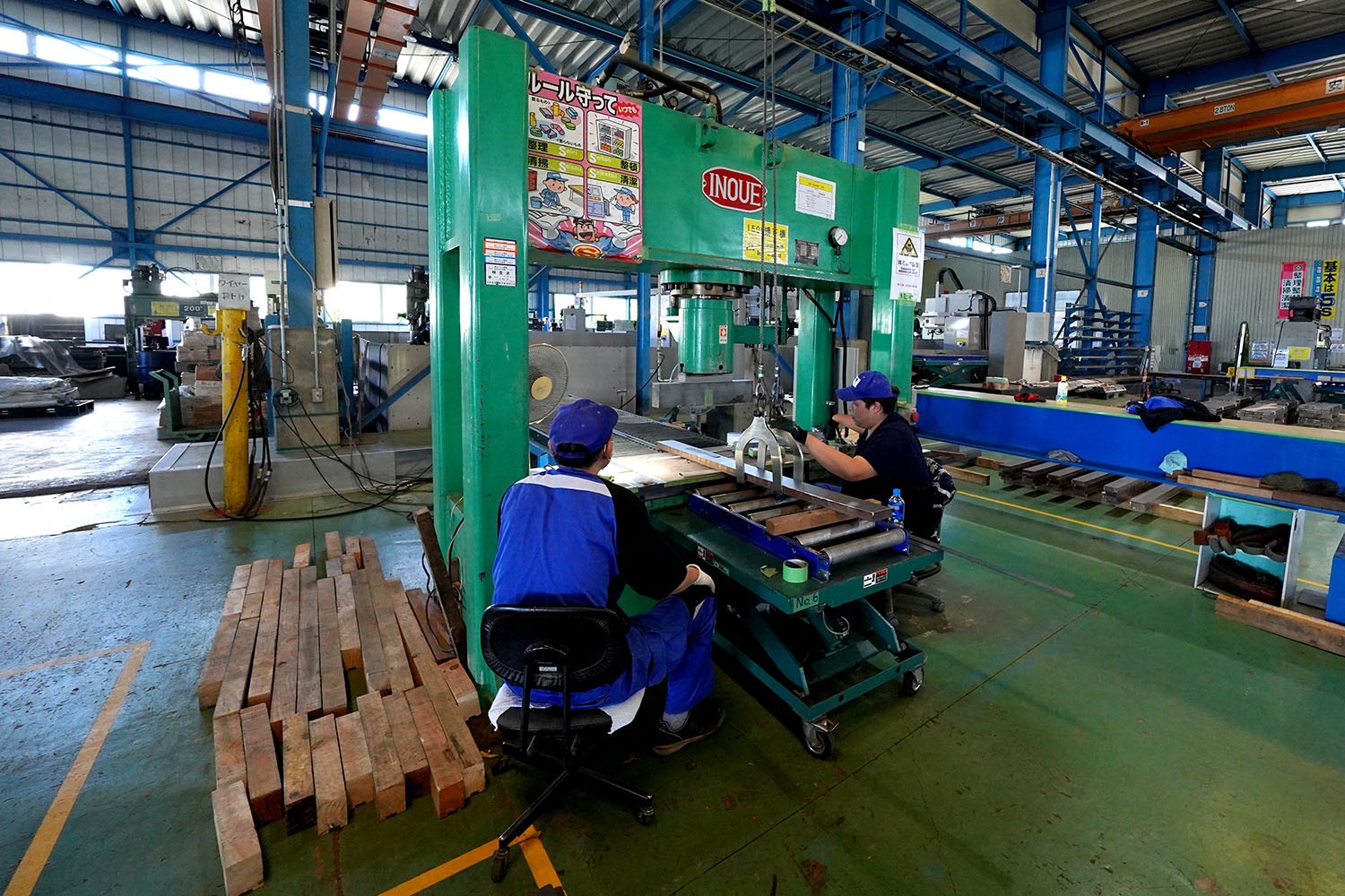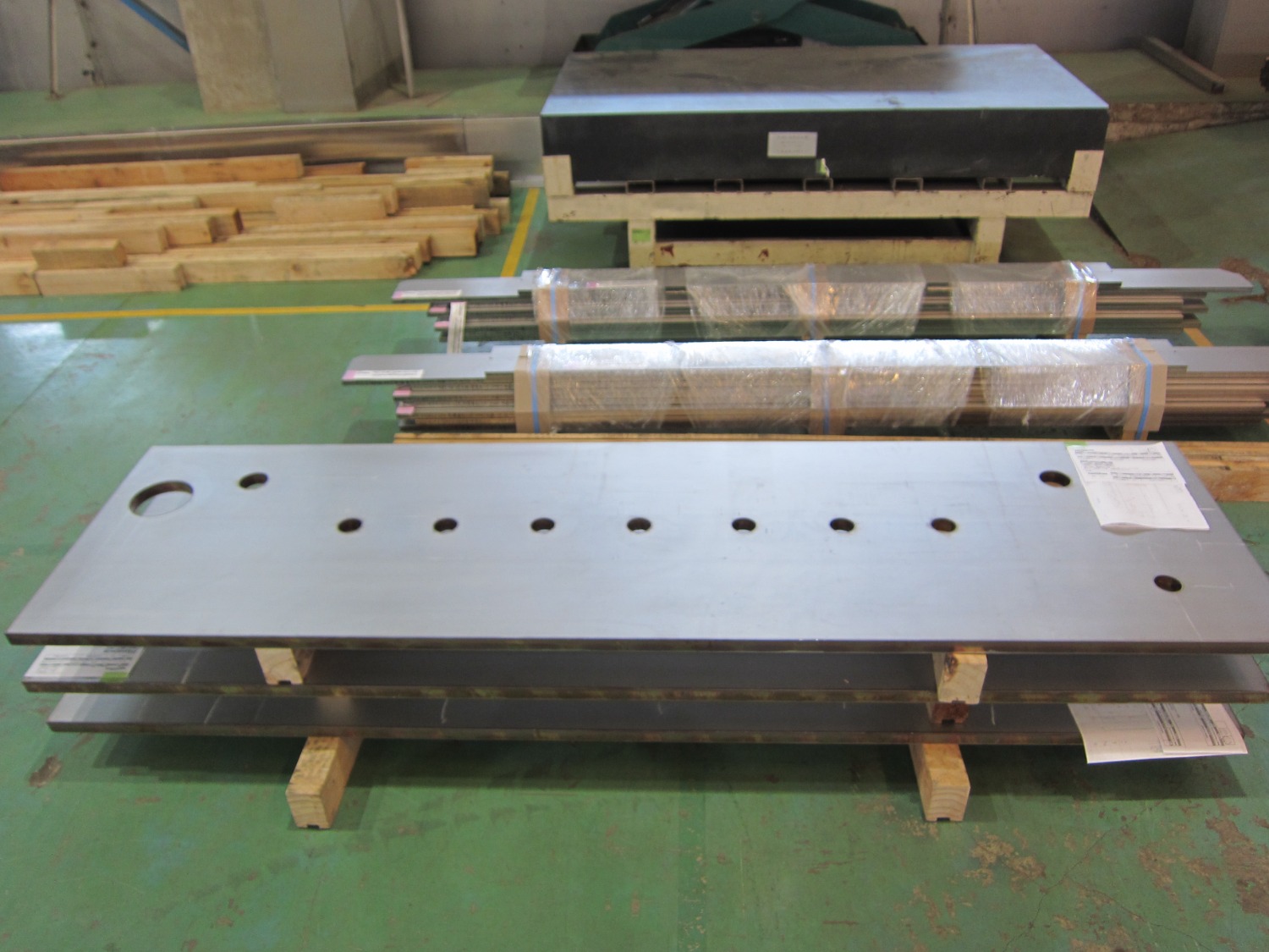 メーカー コータキ精機(株)/協三工業(株)/井上油圧機械製作所 部門 矯正・板金・研磨作業部門 対応する素材 ステンレス 過去の実績例 500t矯正機:50mm×2,200mm×3,500mm・重量3.0t(ステンレス製)/300t矯正機:30mm×2,100mm×3,500mm・重量2.0t(ステンレス製)/200t矯正機:30mm×500mm×3,000mm・重量0.5t(ステンレス製) 機種 プレス機 仕様 テーブルサイズ:1m~3m 出力:100t~500t 工場クレーン最大:4.8t 内容 切断後の製品の反りを矯正するプレス機です。作業能力(仕上がり平坦度)は1mに対し、1.0mmを基準としています。 -