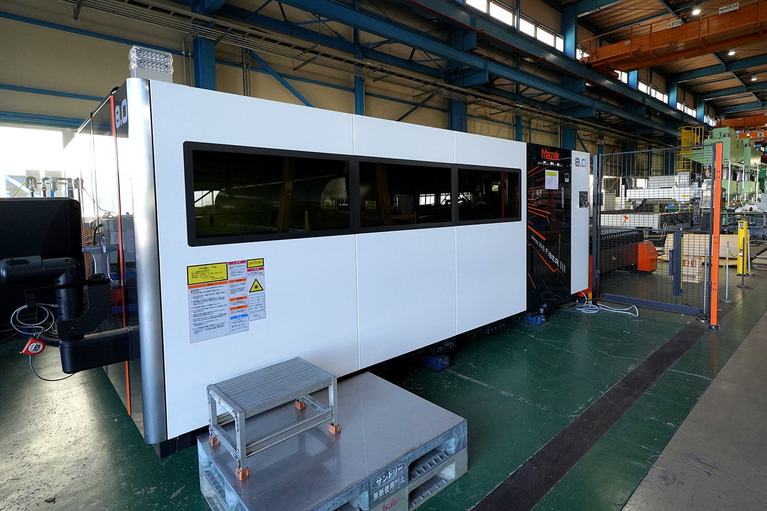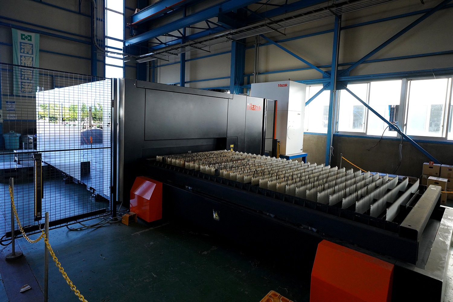 メーカー ヤマザキマザック(株) 部門 素材切断部門 機種 レーザー 仕様 テーブルサイズ:1,524mm×3,048mm 出力:8kW 工場クレーン最大10.0t 内容 2段式パレットチェンジャー搭載機です。薄板切断において切断速度が速く、精度も高いため、スケジュール運転を用いて短時間で多品目・多数個の作業ができます。 機械設備取付用スペーサー(0.5mm~5mm)などの切断可能です。 -