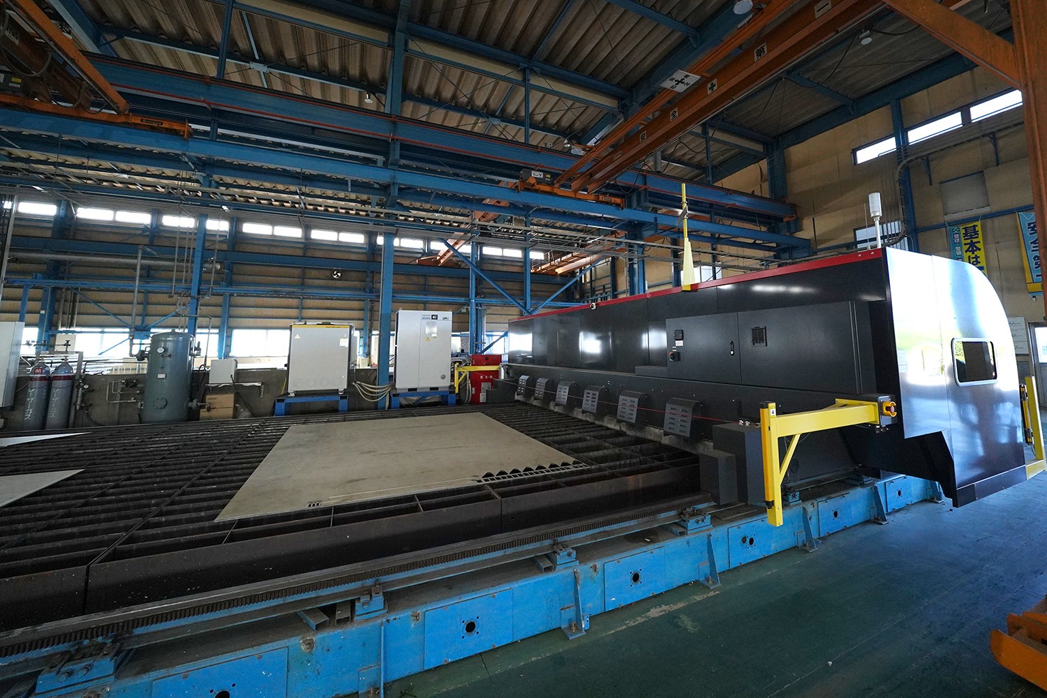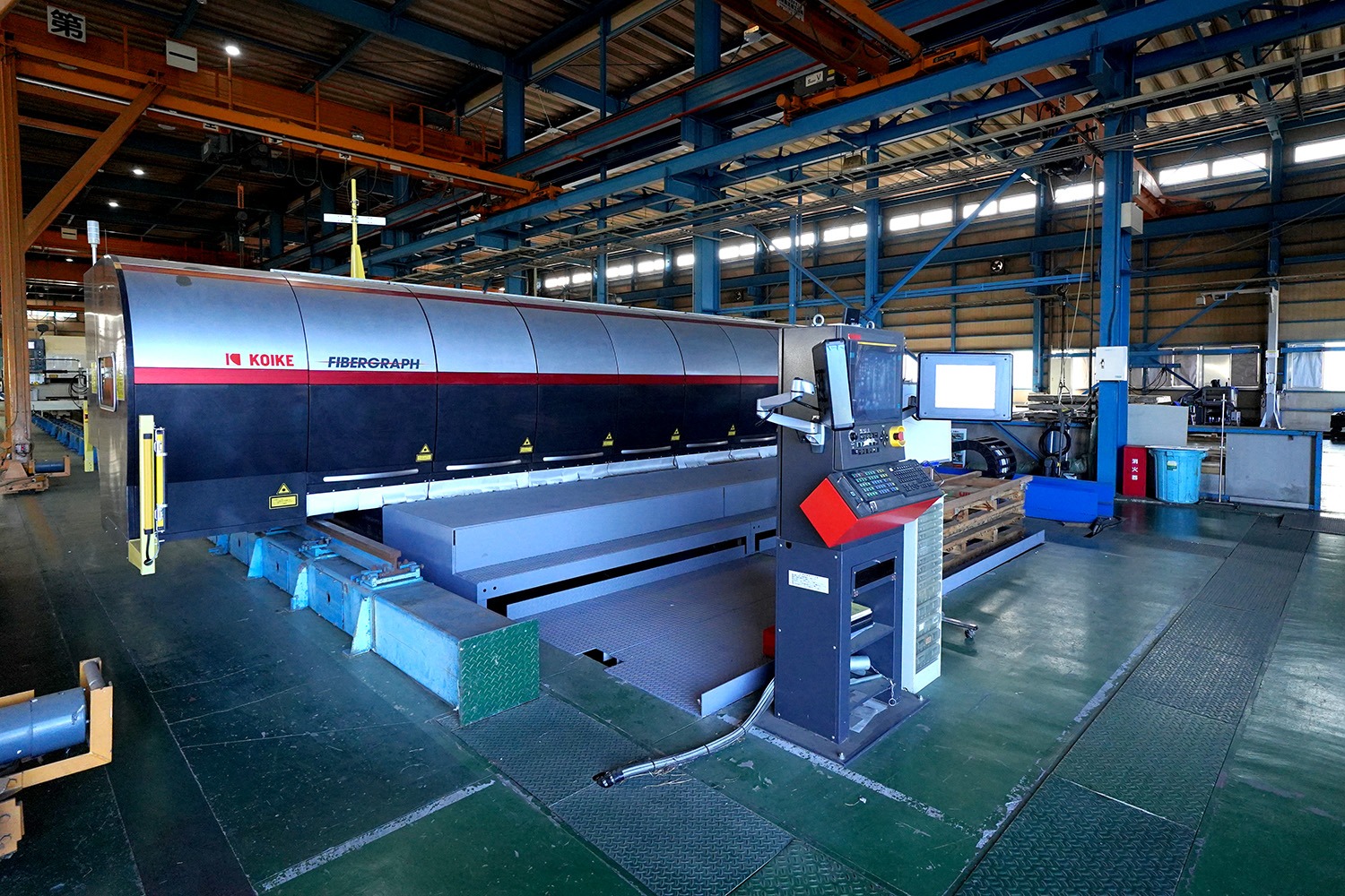 メーカー 小池酸素工業(株) 部門 素材切断部門 機種 レーザー 仕様 テーブルサイズ:4.3m×12m 出力:6kW 工場クレーン最大:10.0t 内容 機上式門型ファイバーレーザー加工機です。1,524mm×3,048mm以上で、板厚10mm以下の製品を切断する場合に適しています。ファイバーレーザーでは珍しい機上式門型のため、大きな薄板が切断可能です。 -