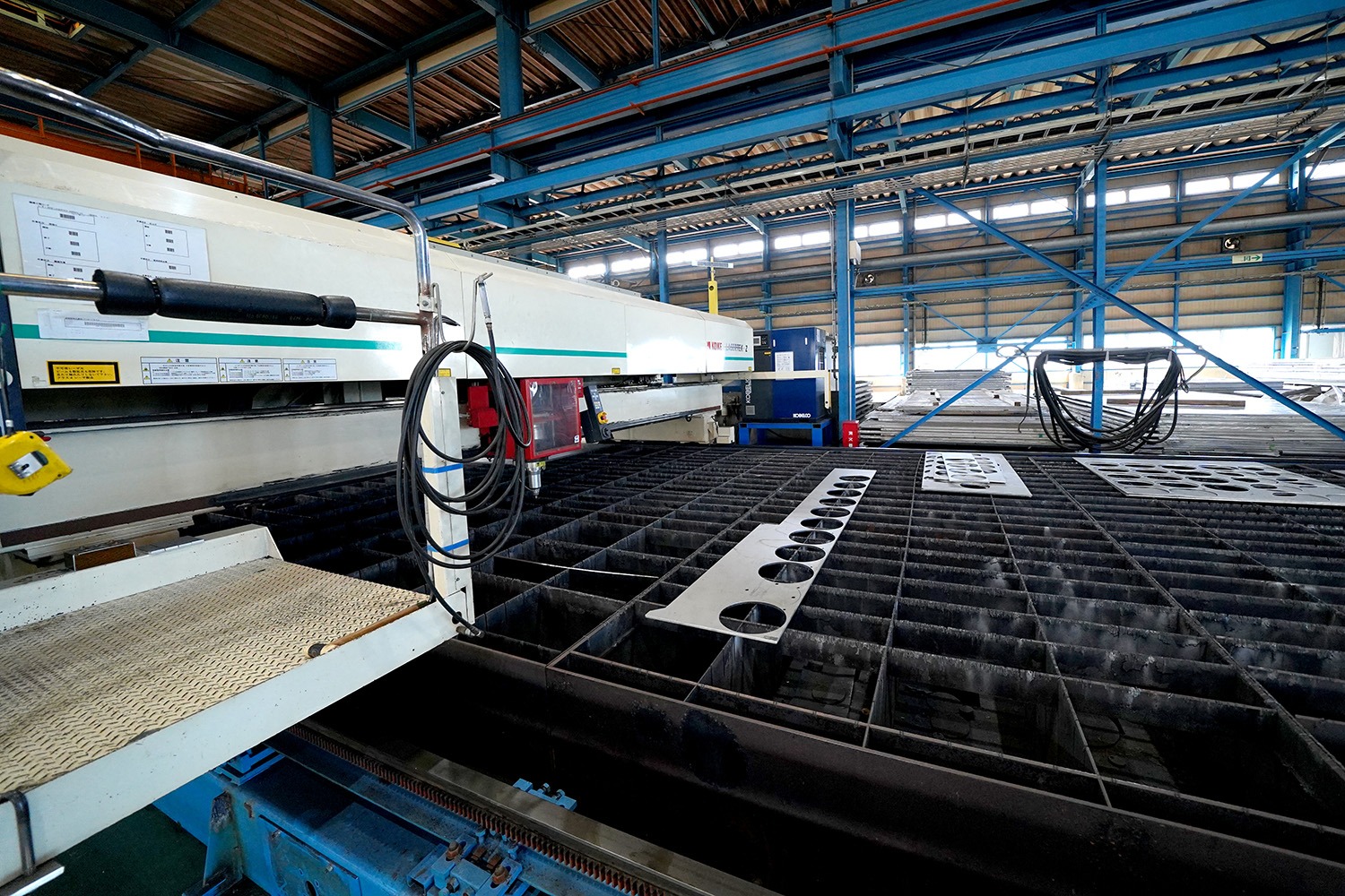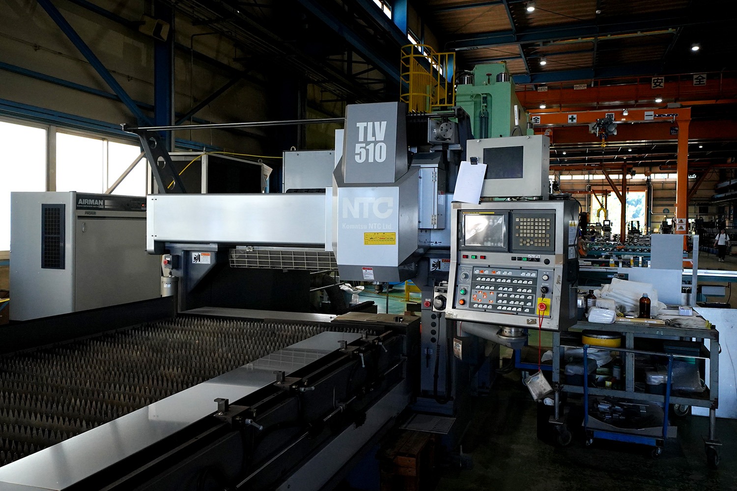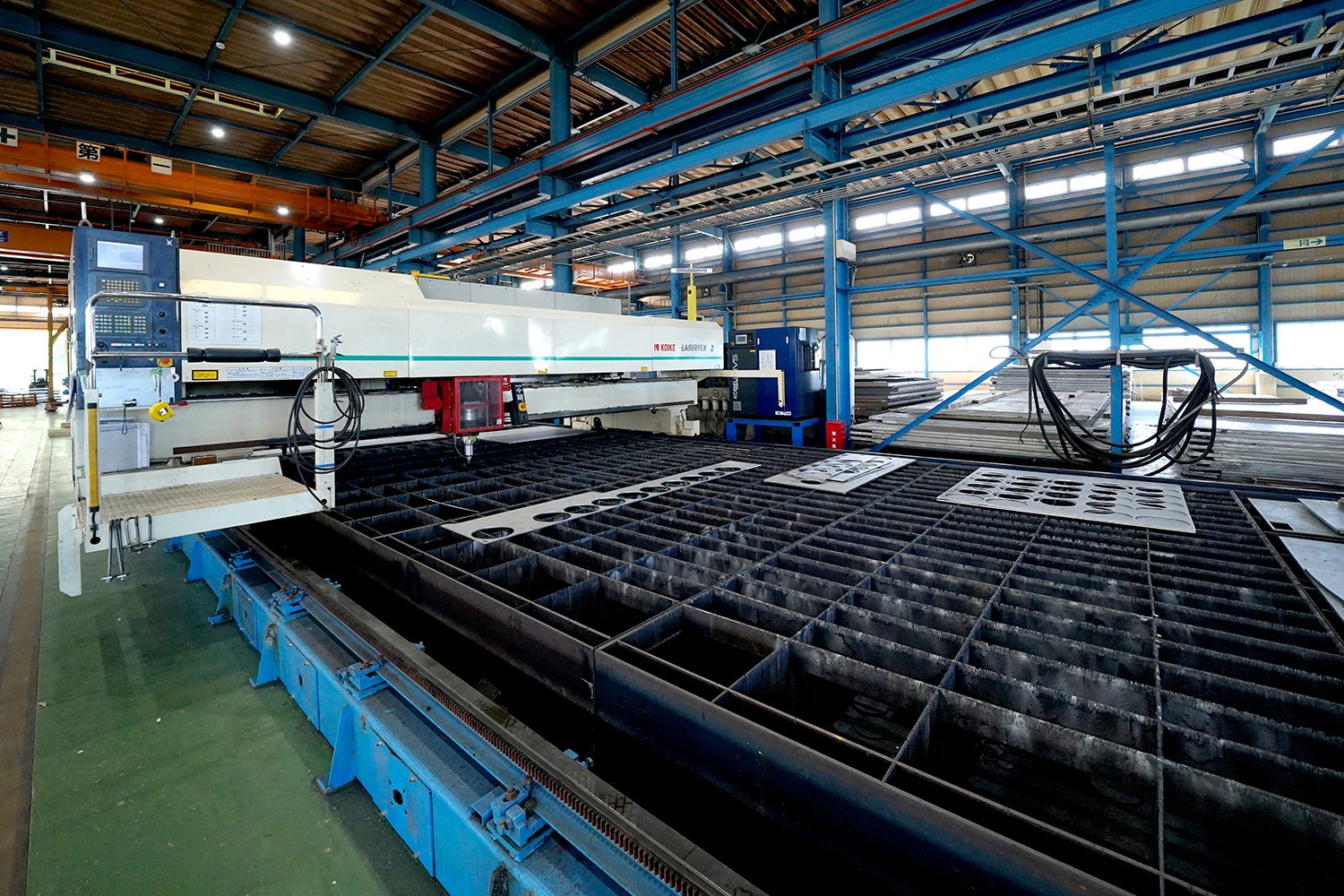 メーカー コマツ産機(株) 部門 素材切断部門 機種 レーザー 仕様 テーブルサイズ:1,524mm×3,048mm 出力:2.5kW 工場クレーン最大:10.0t 内容 テーブル式Co2加工機です。テーブル加工機のため、材料段取りが簡単で作業性がよく、位置決めが±0.2mmと精度も高く、材料への追加工などが可能です。 -